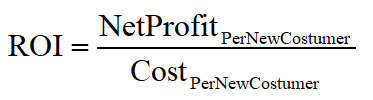 כלומר, מבחינה מעשית, כאשר מקטינים את עלות גיוס הלקוח מקבלים אפקט כפול: גם מקטינים את המכנה וגם מגדילים את המונה ובכך מגדילים את ה - ROI למקסימום האפשרי.