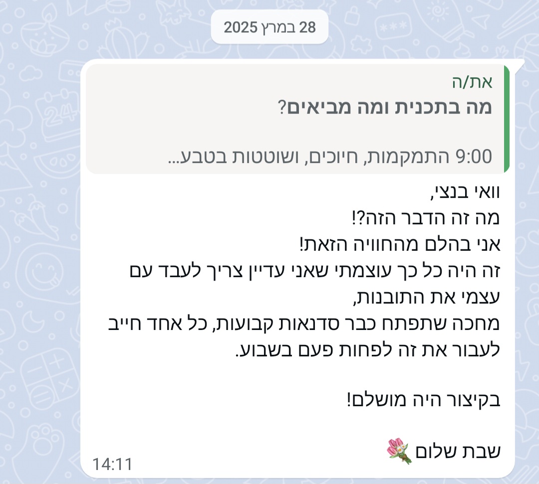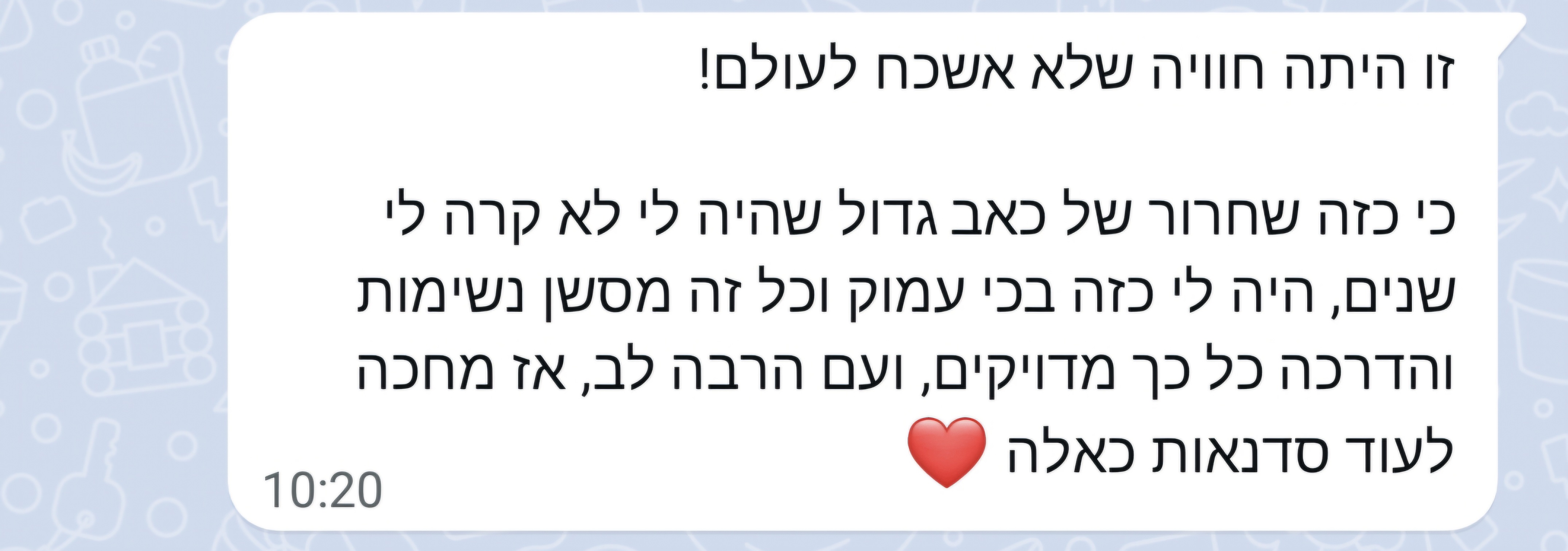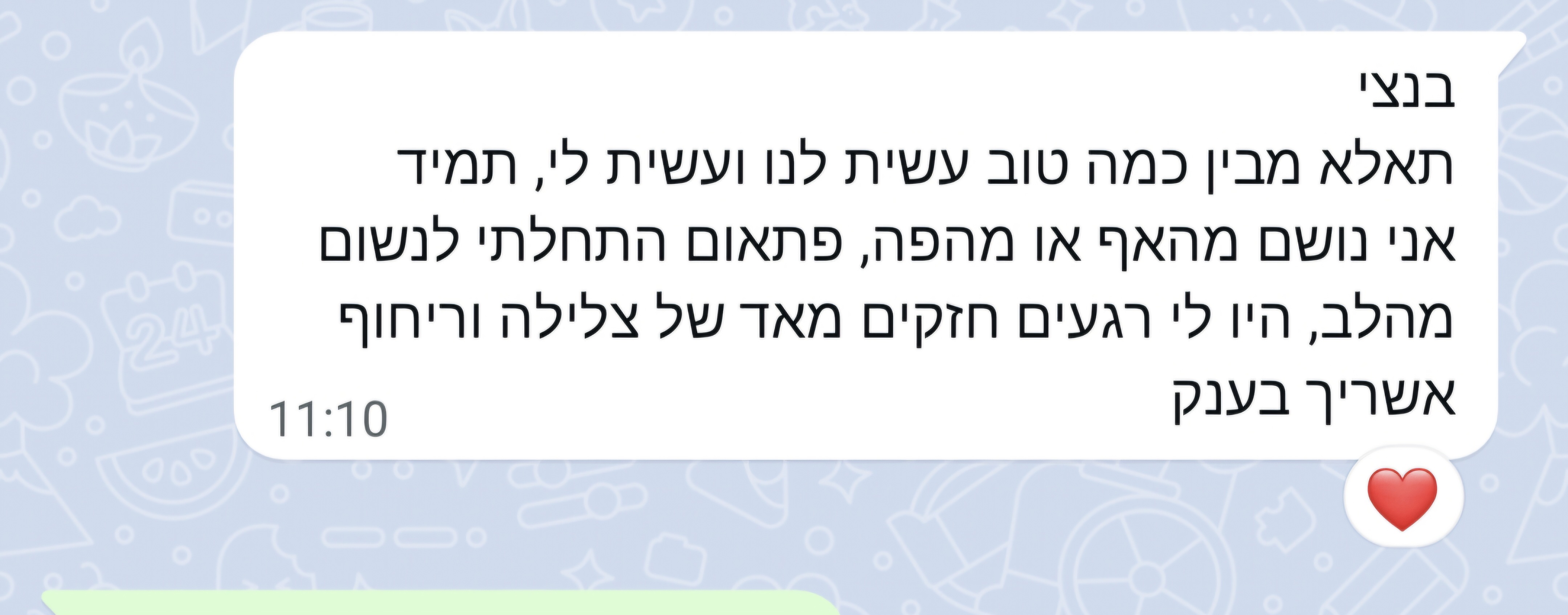 עברתי הכשרות עומק בארץ ובעולם כדי לרכוש עוד ועוד כלים. לצד זה איני מפסיק לחקור בעצמי ועלי, לגלות את האופן שבו נשימה משפיעה עלינו. איך אנחנו יכולים לעבוד עם הגוף, מערכת העצבים והנשימה כדי להביא רווחה אמיתית ושינוי לחיים שלנו.