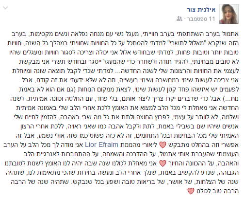 שאלה מצוינת, אין שום חובה לשתף או לעבור את כל התהליכים שיהיו שם, החובה היחידה שמתקיימת היא - להיות נאמנה לעצמך ולהאמין שאת יכולה לעשות הכול.