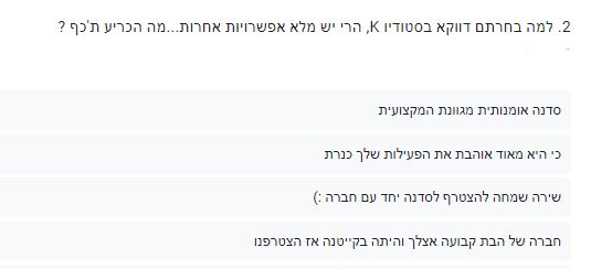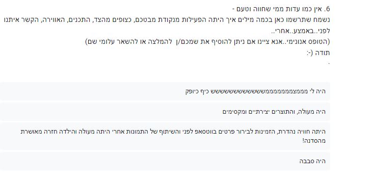 - הילדים יכירו עולם בו אין תשובה אחת נכונה. יש מגוון תשובות וכולן נכונות.