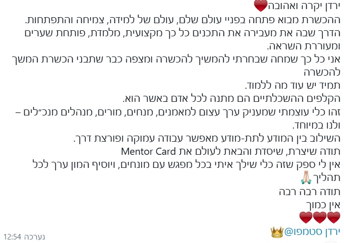 מתוך הרצון לחבר בין משמעות, טכנולוגיה מתקדמת ואנושיות, פיתחה את Mentor Cards – הפלטפורמה הדיגיטלית הראשונה מסוגה בישראל, המאפשרת למטפלים ומנחים לעבוד עם קלפים מכל מקום ובכל זמן.