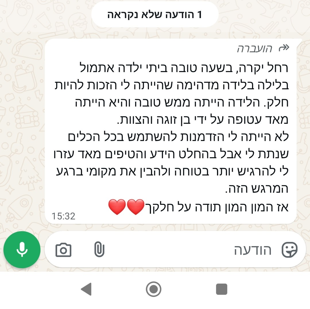 יש לי ניסיון בלווי לידת ויבק (לידה רגילה אחרי קיסרי).