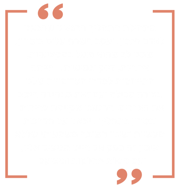 המשפחות שזכינו ללוות מעידות על ביטחון גבוה, עקשנות, מסירות, אכפתיות ואמינות בתהליך הליווי ועד להשגת המטרה.